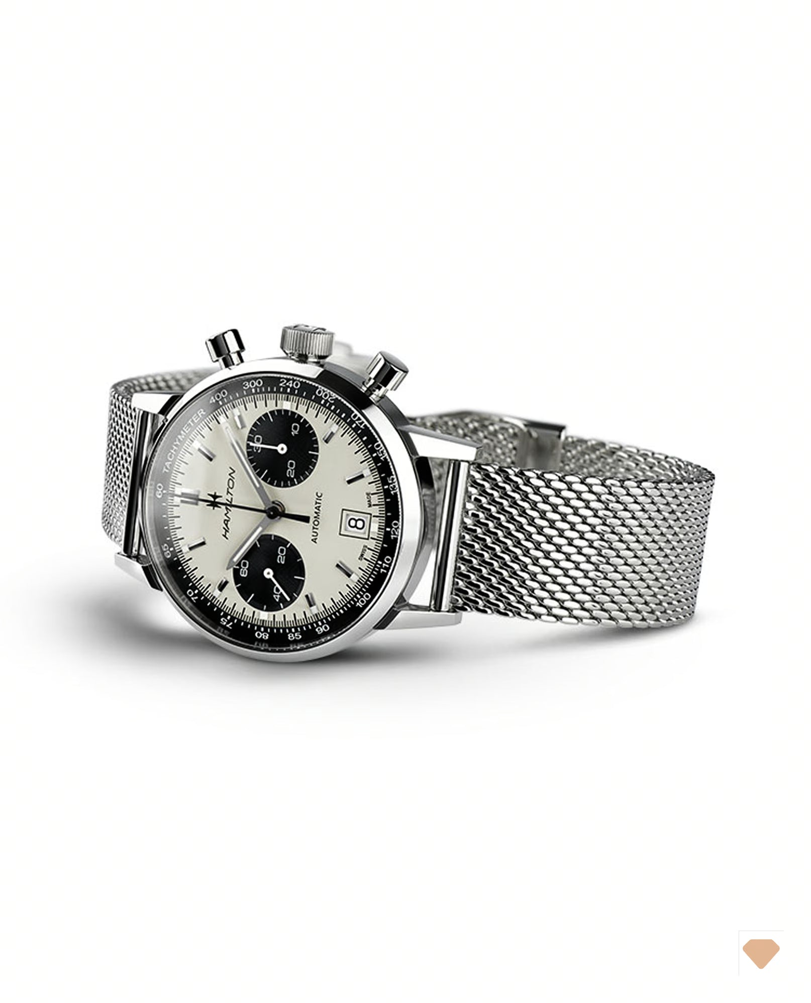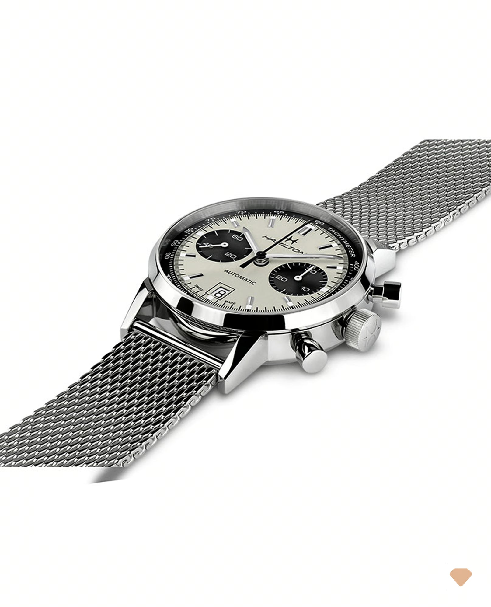 The Intra-Matic Auto Chrono by Hamilton is a modern reinterpretation of an iconic 1968 creation for a classic and sporty look. The special "Panda" effect dial, which combines an authentic 60s style with the exclusive H-31 automatic movement, is sure to attract everyone's attention.