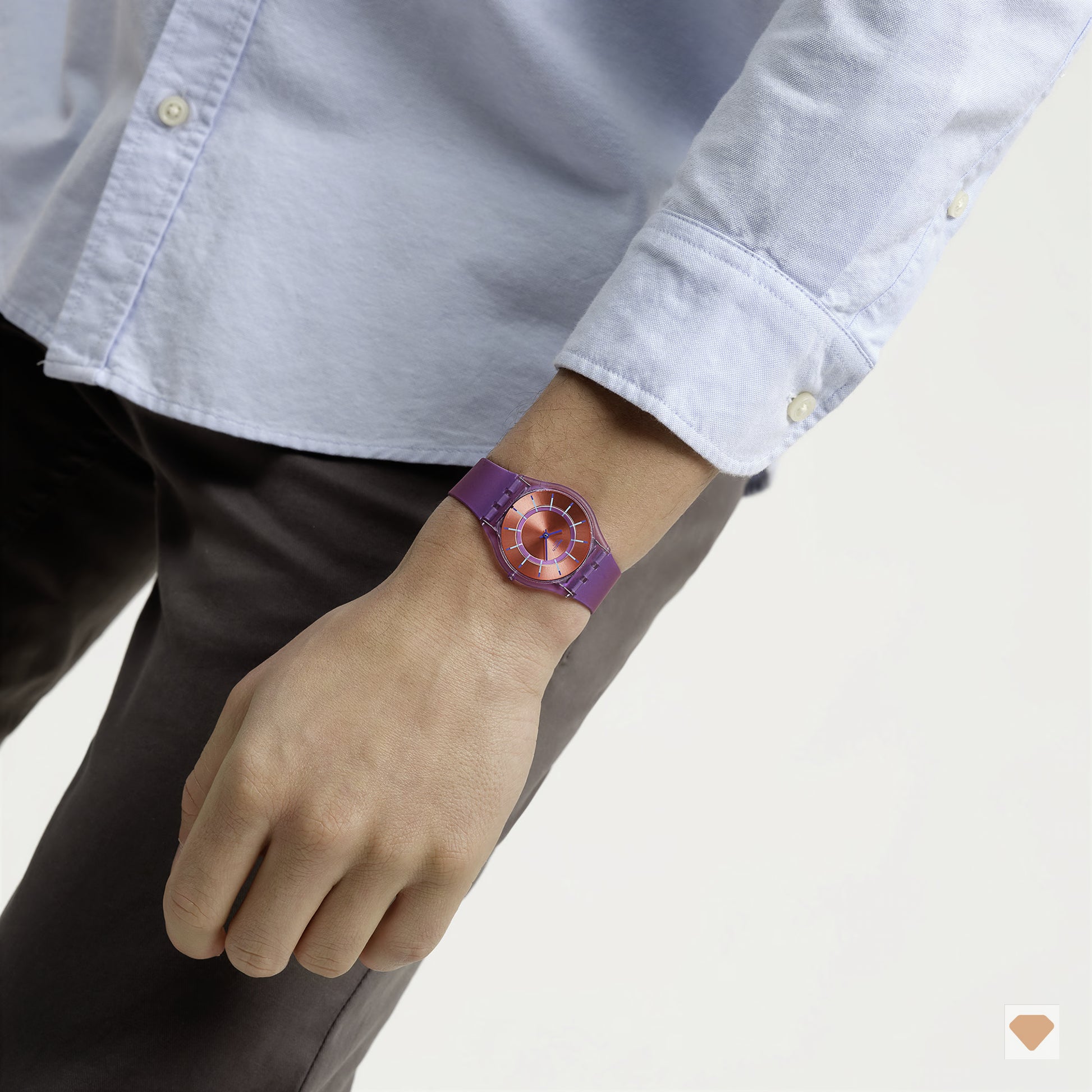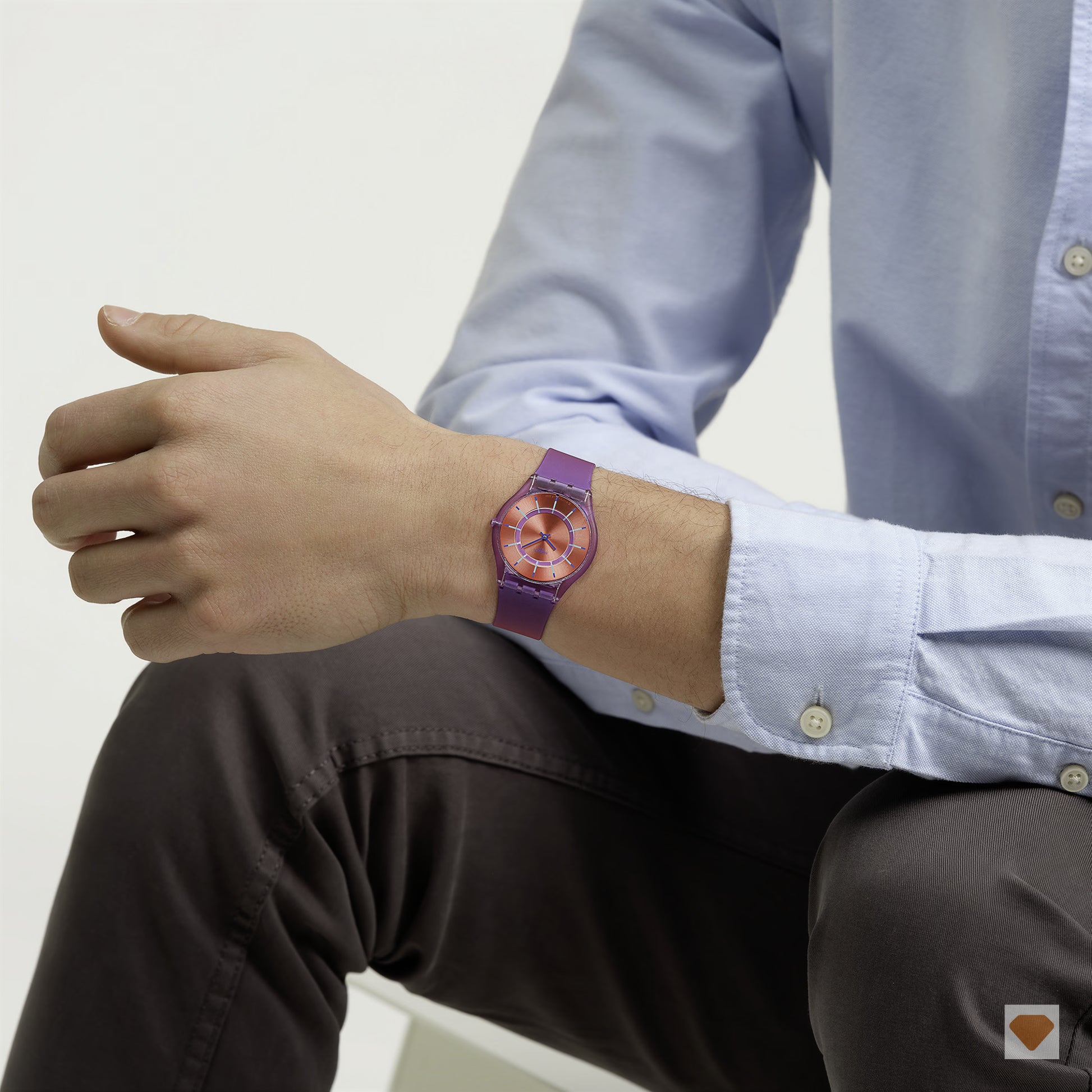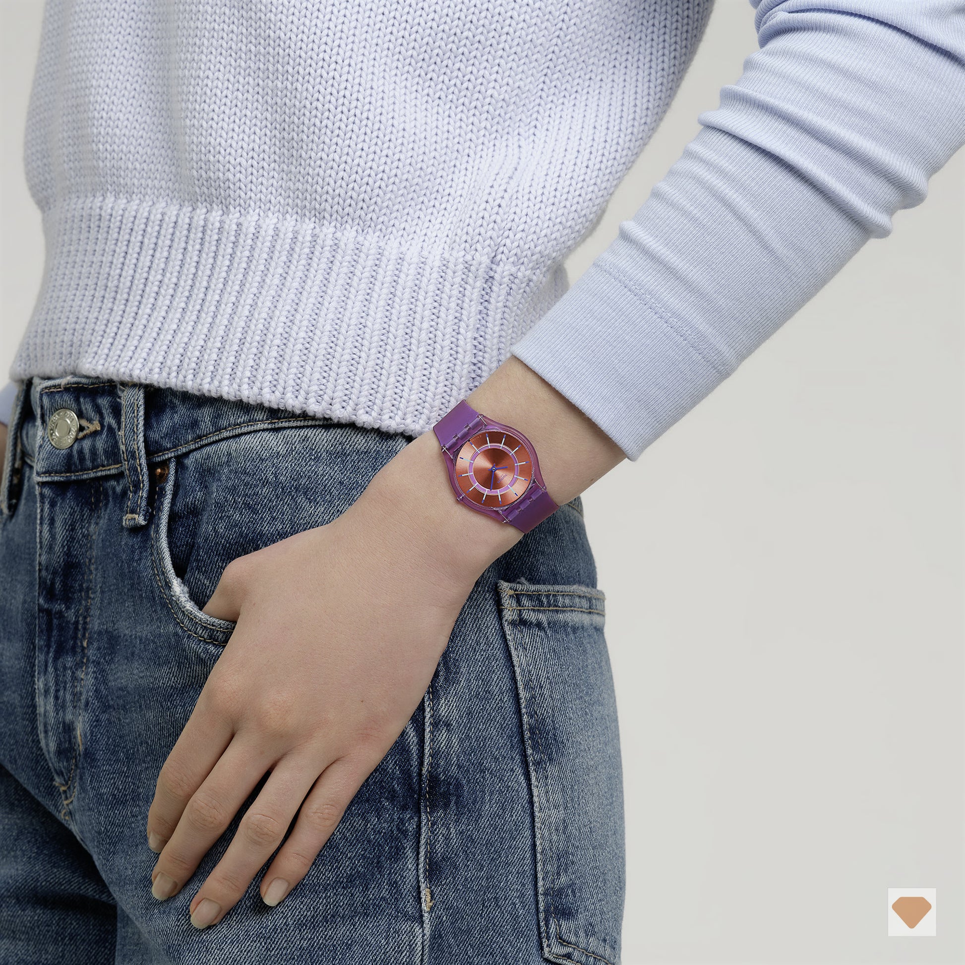 This limited edition Mother's Day 2023 gift watch with a matte red case and matching strap has a white printed dial and fluorescent hands. The different colored hearts in the calendar wheel remind your mom that you love her.