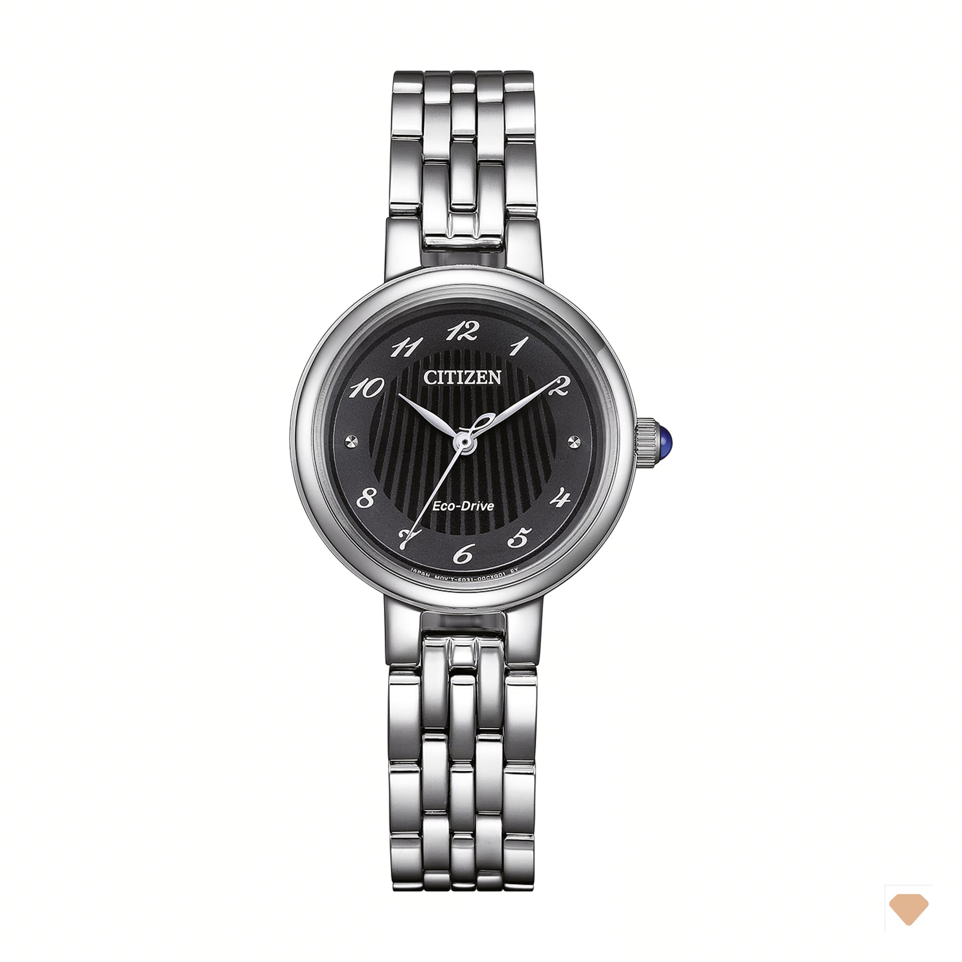 Diese elegante Citizen L Armbanduhr EM0996-84Y vereint präzise Technik mit zeitlosem Design. Das Edelstahlgehäuse (Ø 27,7 mm, Höhe 7,73 mm) und das schwarze Zifferblatt mit arabischen Zahlen schaffen eine klare, edle Optik.
