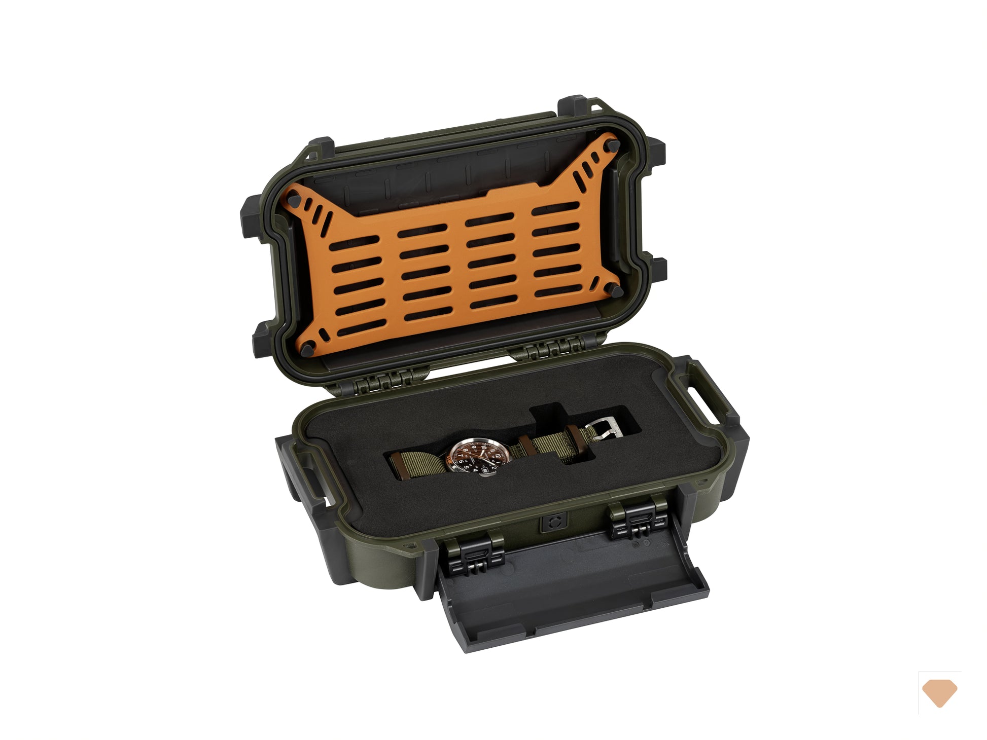 Mit ihrem Edelstahlgehäuse, dem schwarzen Zifferblatt und den mit Super-LumiNova® beschichteten Zeigern für optimale Ablesbarkeit bei schlechten Lichtverhältnissen passt die robuste Schweizer Uhr perfekt zum Stil der «Black Ops»-Welt. Ein widerstandsfähiges NATO-Armband in Khakigrün unterstreicht den taktischen Charakter des Zeitmessers, während das H-10-Automatikwerk mit einer Gangreserve von 80 Stunden für jede Mission gewappnet ist.