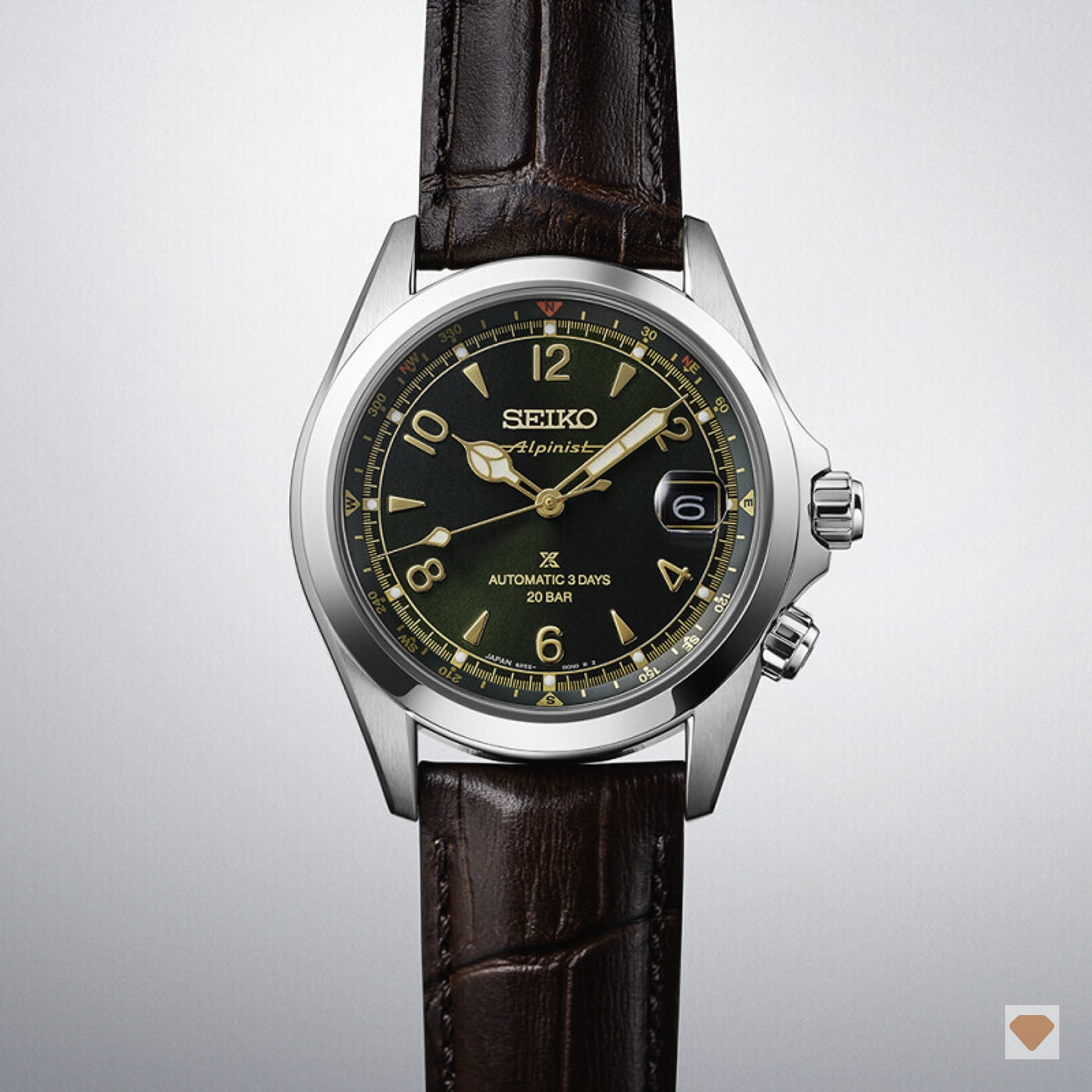 Technisch weiterentwickelt, stilistisch nah am Original von 1959, der Laurel Alpinist. Das neue Kaliber 6R55 sorgt für beeindruckende 72 Stunden Gangreserve, also 3 volle Tage mechanischer Präzision. Verlässlich, robust und bereit, jedes Abenteuer zu meistern. Ideal für alle, die Zeit neu denken und Geschichte am Handgelenk tragen möchten. Das satte Grün erinnert an dichte Nadelwälder und weite Berghänge. Diese Farbe strahlt Ruhe aus und betont den ursprünglichen Outdoor-Charakter der Alpinist. Die SPB507J1 setzt außerdem mit ihrem verantwortungsvoll produzierten Lederband ein nachhaltiges Zeichen und vereint ästhetischen Anspruch mit einem bewussten Umgang mit Ressourcen.
