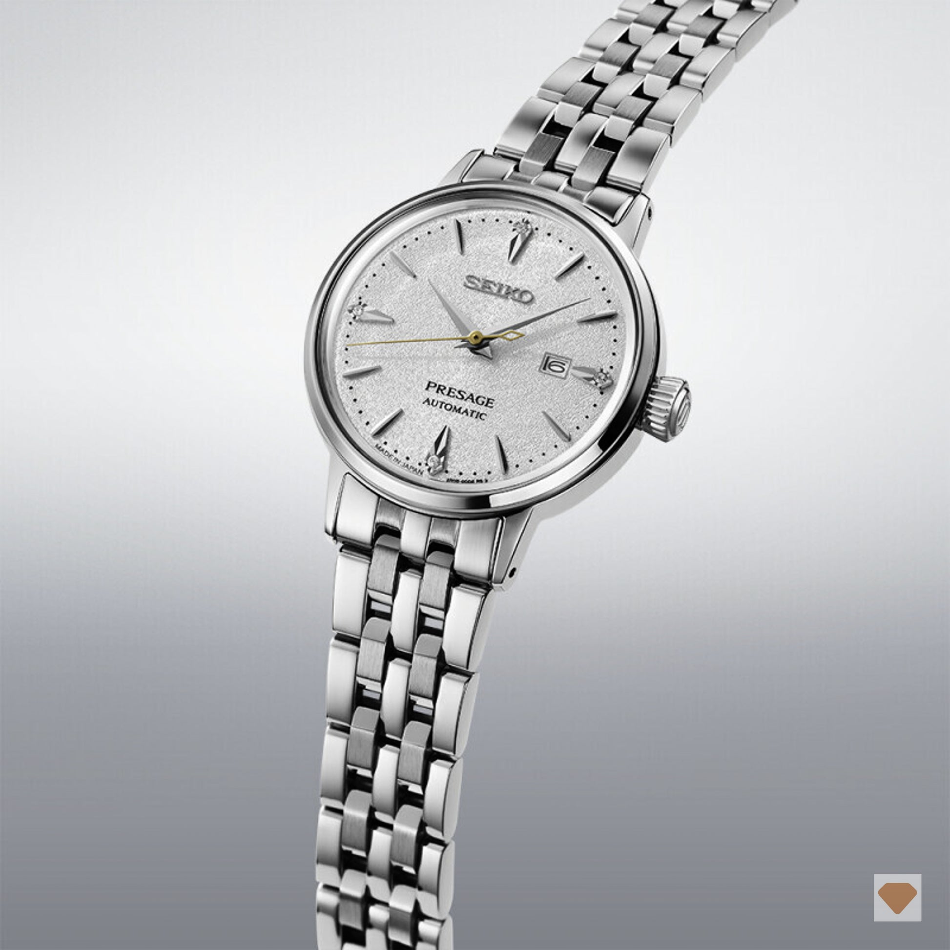 Der Herbst und Winter kommen mit diesen neuen Modellen Presage Cocktail Time 30 mm an Ihr Handgelenk, die von warmen Cocktails im Tageslicht inspiriert sind. Das Zifferblatt dieses Modells erinnert an die verschiedenen Schichten des Cocktails Hot Buttered Rum Cow. Jedes Detail wurde für das Auge entworfen: spitze Indizes mit einem echten Diamanten in der Mitte, ein verschraubter Gehäuseboden für mehr Finesse und Armbänder aus Stahl oder Leder, je nach Ihrem Stil.