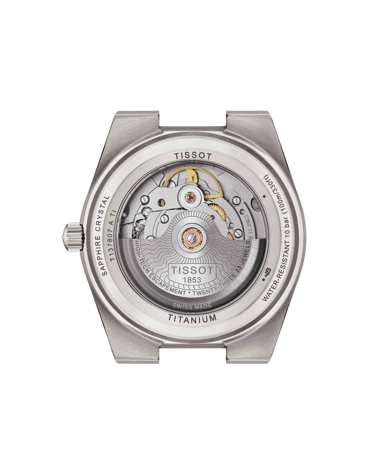 Komplettiert wird die Tissot PRX 38mm von einem flexiblen Titanarmband mit Butterfly-Faltschließe mit Drückern. Dank Schnellwechselsystem lässt es sich einfach und werkzeuglos austauschen.