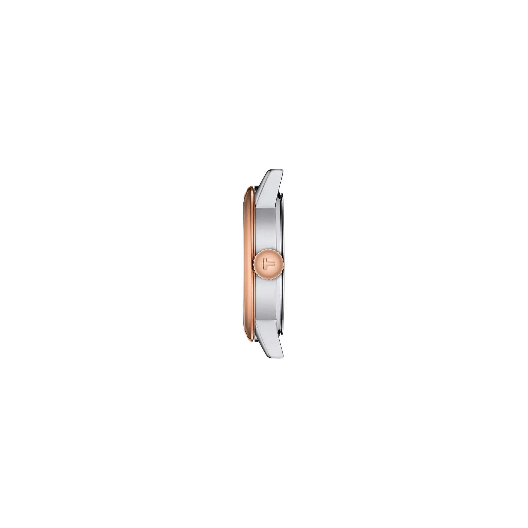 Die beliebte Tissot Classic Dream Kollektion wurde überarbeitet und mit einem neuen Design ausgestattet. An dem ursprünglichen Ziel als klassische und elegante Uhr für jeden Tag zu dienen hat sich allerdings nichts geändert. Der zeitlose Stil macht die Uhr zu einem immerwährenden Klassiker. Die Classic Dream verfügt über ein Swiss-Made Quarzwerk. Das Zifferblatt mit Datumsanzeige und römischen Ziffern geben der Uhr einen klassischen Schliff. Dieses Damenmodell verfügt über ein Bicolor 316L-Edelstahlgehäuse mit rosegoldfarbener PVD-Beschichtung und ein weißes Zifferblatt, welches von einem kratzfestem Saphirglas geschützt wird. Das massive Bicolor 316L-Edelstahlarmband mit rosegoldfarbener PVD-Beschichtung besitzt eine Butterfly-Schließe mit Drückern.